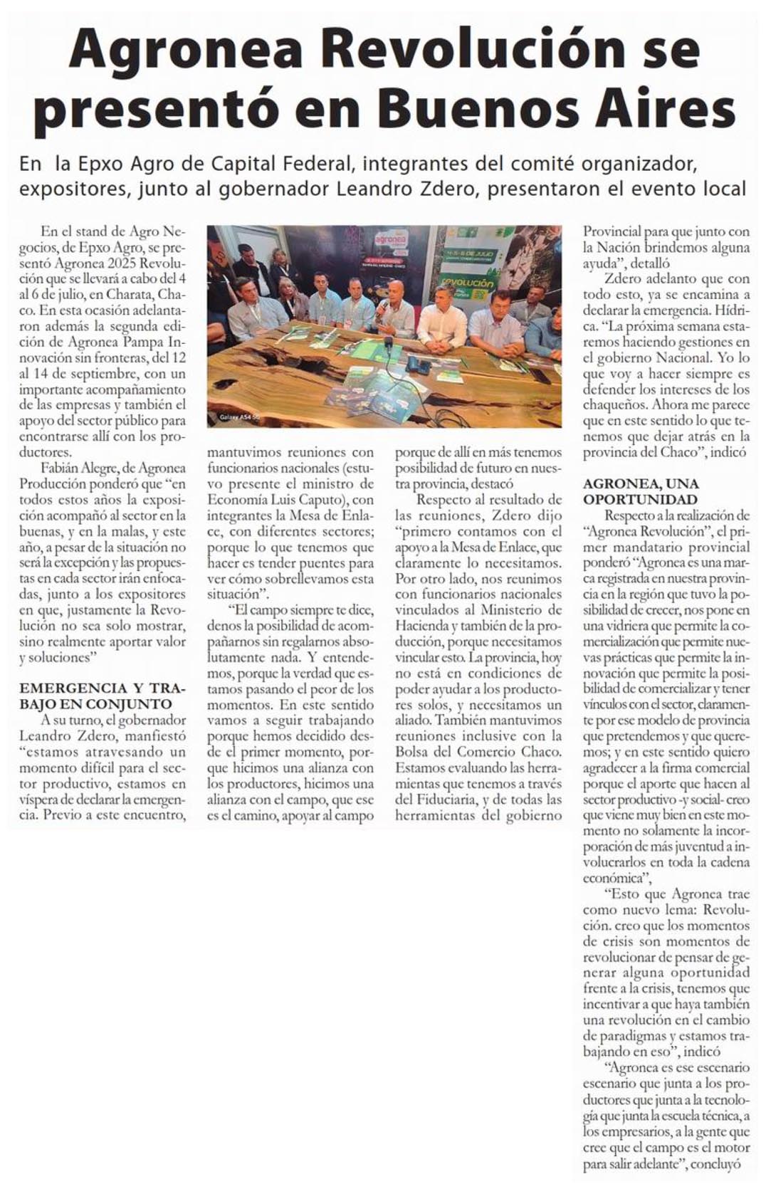 …Agronea Revolución se presentó en Buenos Aires En la Expo Agro de Capital Federal, integrantes del comité organizador y expositores, junto al gobernador Leandro Zdero, presentaron el evento local. En el stand de…
