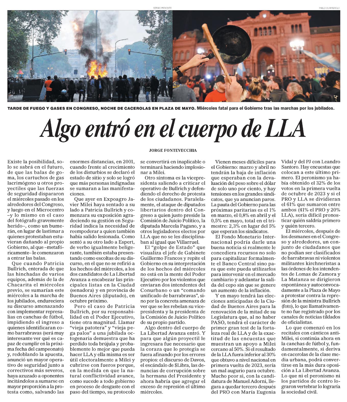 … crecimiento de los disturbios se declaró el estado de sitio y solo se logró que más personas indignadas se sumaran a las manifestaciones. Que ayer en Expoagro Javier Milei haya sentado a su lado a Patricia Bullrich y comenzara su exposición agradeciendo su gestión en Seguridad indica la necesidad de reempoderar…