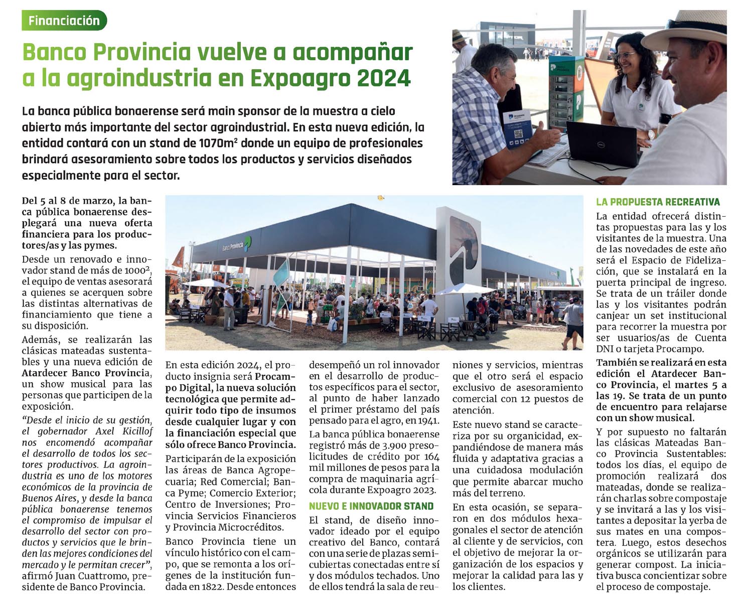 «Desde el inicio de su gestión, el gobernador Axel Kicillof nos encomendó acompañar el desarrollo de todos los sectores productivos. La agroindustria es uno de los motores económicos de la provincia de Buenos Aires, y desde la banca pública bonaerense tenemos el compromiso de impulsar el desarrollo del sector con productos y servicios gue le brinden las mejores condiciones del mercado y le permitan crecer», afirmó Juan Cuattromo, presidente de Banco Provincia.