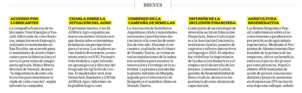 ACUERDOPOR LUBRICANTES La compañía francesa de lubricantes Total Energies y Vas- salli, fabricante de cosechadoras, anunciaron en Expoagro, realizada recientemente en San Nicolás, un acuerdo para el suministro de aceites lubricantes para la fabricación y el servicio post venta de maquinaria…
