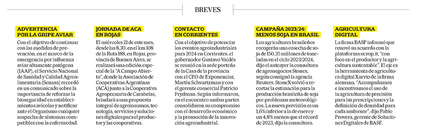 agricultura digital la firma BaSF informó que renovó su acuerdo con la plataforma ucrop.it, «con foco en el productor y la agricultura sustentable». El eje es la herramienta de agricultura digital Xarvio de la firma alemana. «acompañamos e incentivamos el uso de la agricultura de precisión para las prescripciones y la definición de densidad para cada ambiente», dijo pablo provera, gerente de Soluciones Digitales de BaSF.