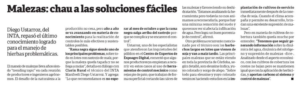 “Estamos analizando la herramienta pero todavía no nos animamos a recomendarla, porque hay una mínima remoción del suelo y queremos ver si afecta la infiltración de agua. Pero logra un buen porcentaje de control”, afirmó.