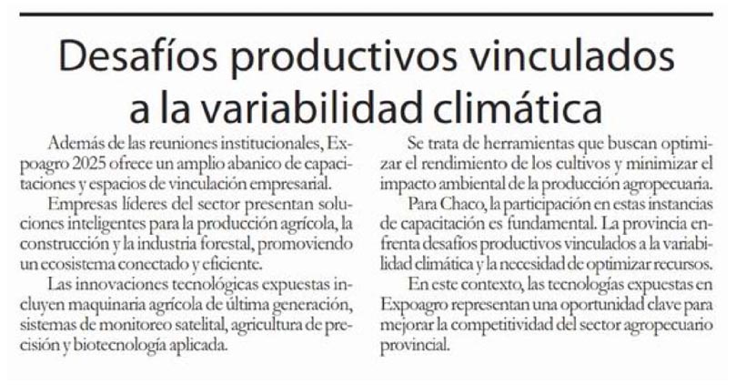 Para Chaco, la participación en estas instancias de capacitación es fundamental. La provincia enfrenta desafíos productivos vinculados a la variabilidad climática y la necesidad de optimizar recursos.