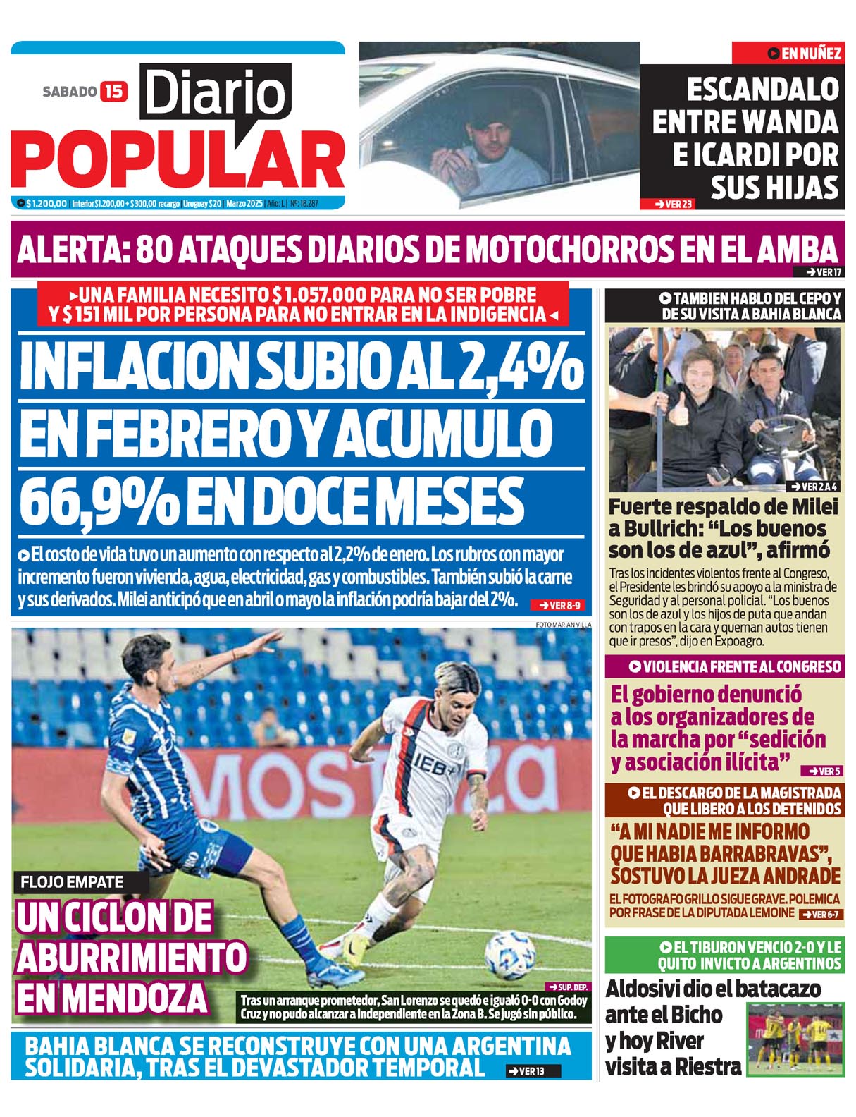 … y al personal policial. «Los buenos son los de azul y los hijos de puta que andan con trapos en la cara y queman autos tienen que ir presos», dijo en Expoagro. VIOLENCIA FRENTE AL CONGRESO El gobierno denunció a los organizadores de la marcha por «sedición y asociación ilícita» «A MI NADIE ME INFORMO QUE HABIA…