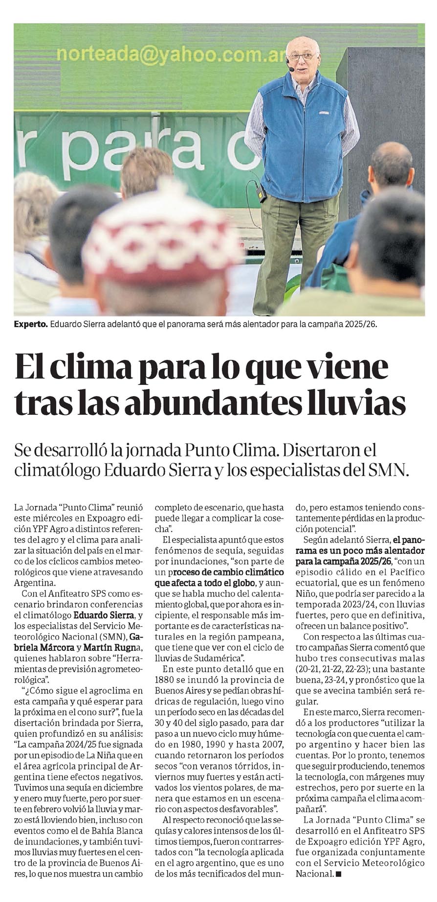 …La Jornada «Punto Clima» reunió este miércoles en Expoagro edición YPF Agro a distintos referentes del agro y el clima para analizar la situación del país en el marco de los cíclicos cambios meteorológicos que…