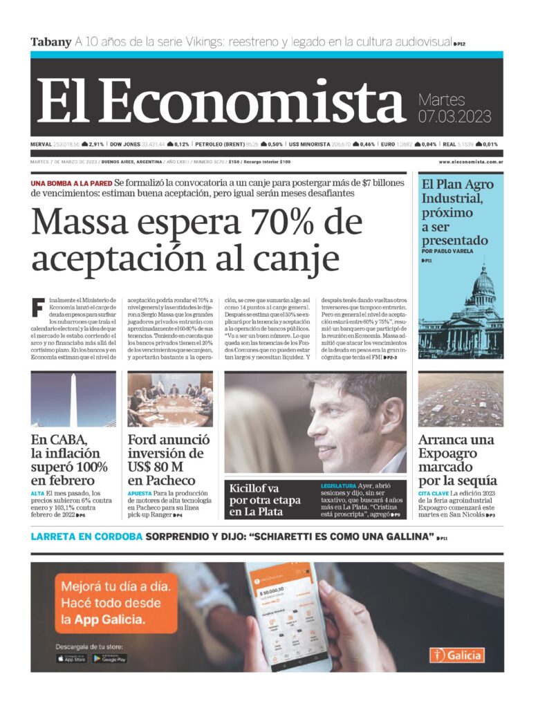 Pero en general el nivel de aceptación estará entre 60% y 75%», resumió un banquero que participó de la reunión en Economía. Massa admitió que atacar los vencimientos de la deuda en pesos era la gran incógnita que tenía el FMI P2-3