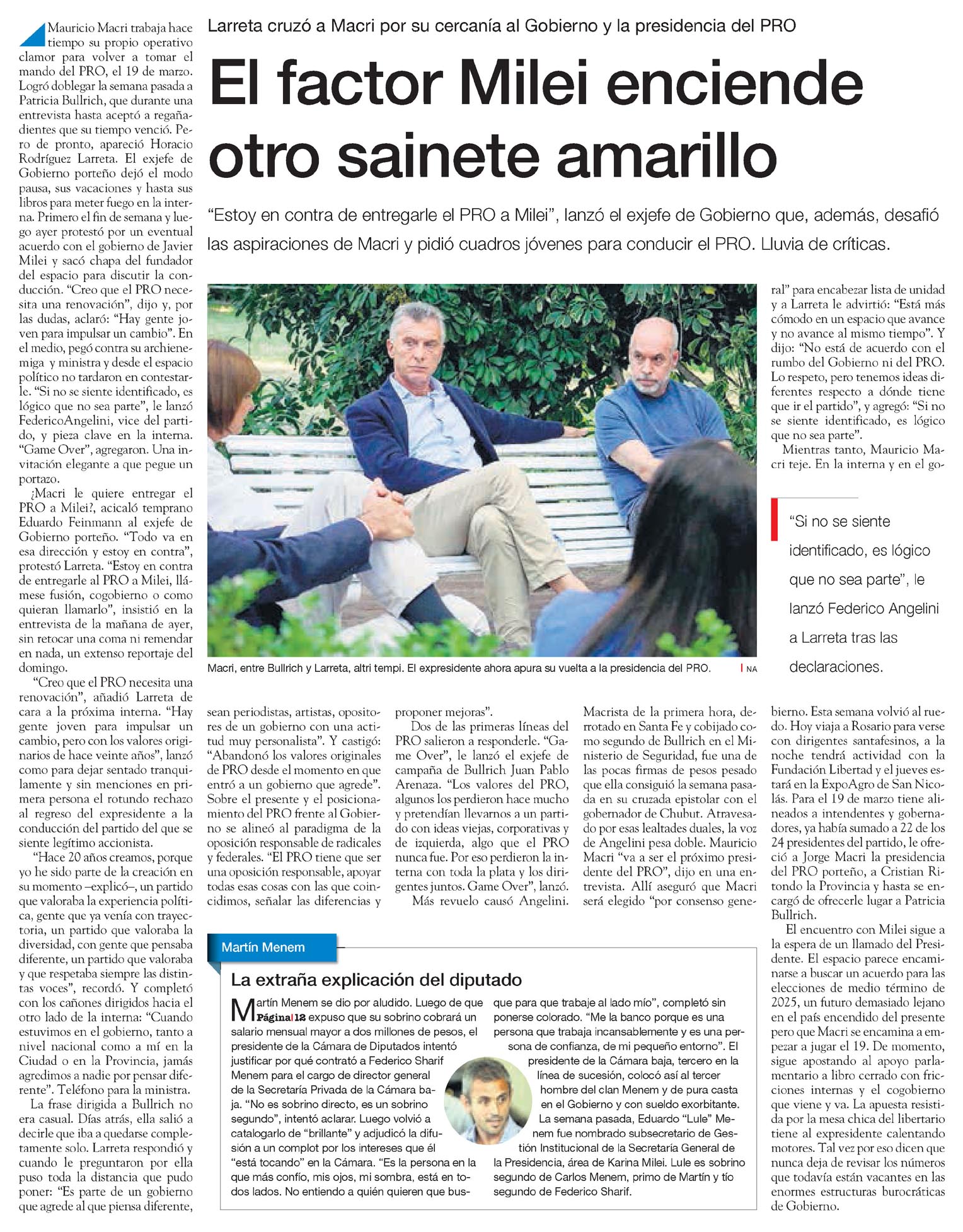«No es sobrino directo, es un sobrino segundo», intentó aclarar. Luego volvió a catalogarlo de «brillante» y adjudicó la difusión a un complot por los intereses que él «está tocando» en la Cámara. «Es la persona en la que más confío, mis ojos, mi sombra, está en todos lados. No entiendo a quién quieren que busque para que trabaje al lado mío», completó sin ponerse colorado. «Me la banco porque es una persona que trabaja incansablemente y es una persona de confianza, de mi pequeño entorno». El presidente de la Cámara baja, tercero en la línea de sucesión, colocó así al tercer hombre del clan Menem y de pura casta en el Gobierno y con sueldo exorbitante.