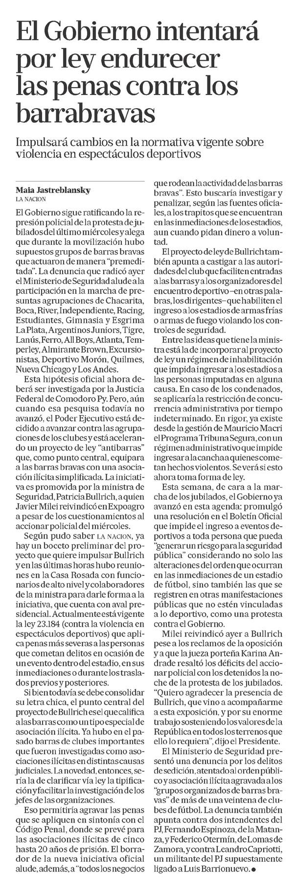 … con una asociación ilícita simplificada. La iniciativa es promovida por la ministra de Seguridad, Patricia Bullrich, a quien Javier Milei reivindicó en Expoagro a pesar de los cuestionamientos al accionar policial del miércoles. Según pudo saber la nación, ya hay un boceto preliminar del proyecto que quiere impulsar…