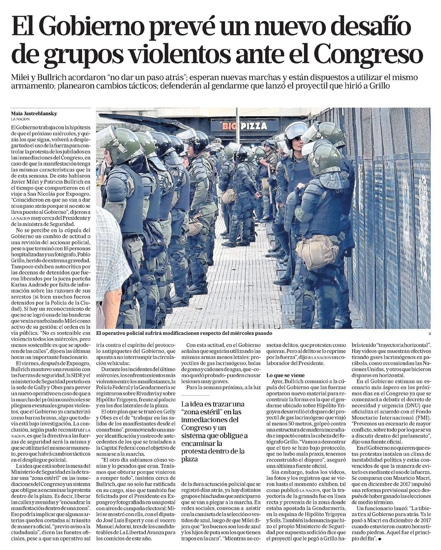 Milei y Bullrich acordaron «no dar un paso atrás»; esperan nuevas marchas y están dispuestos a utilizar el mismo armamento; planearon cambios tácticos; defenderán al gendarme que lanzó el proyectil que hirió a Grillo