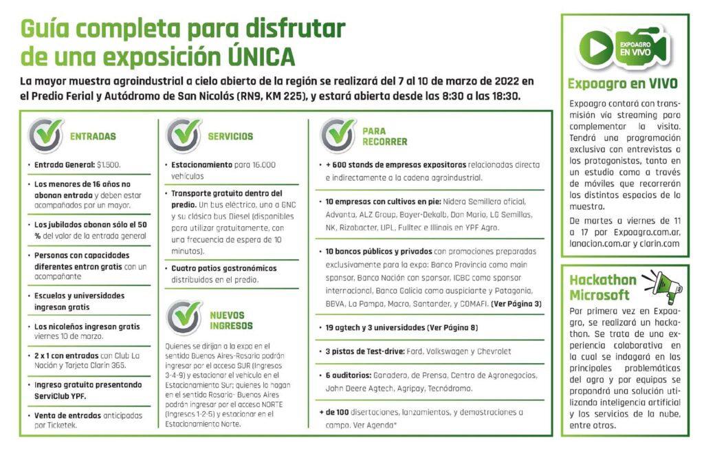 De martes a viernes de 11 a 17 por Expoagro.com.ar, lanacion.com.ar y clarin.com