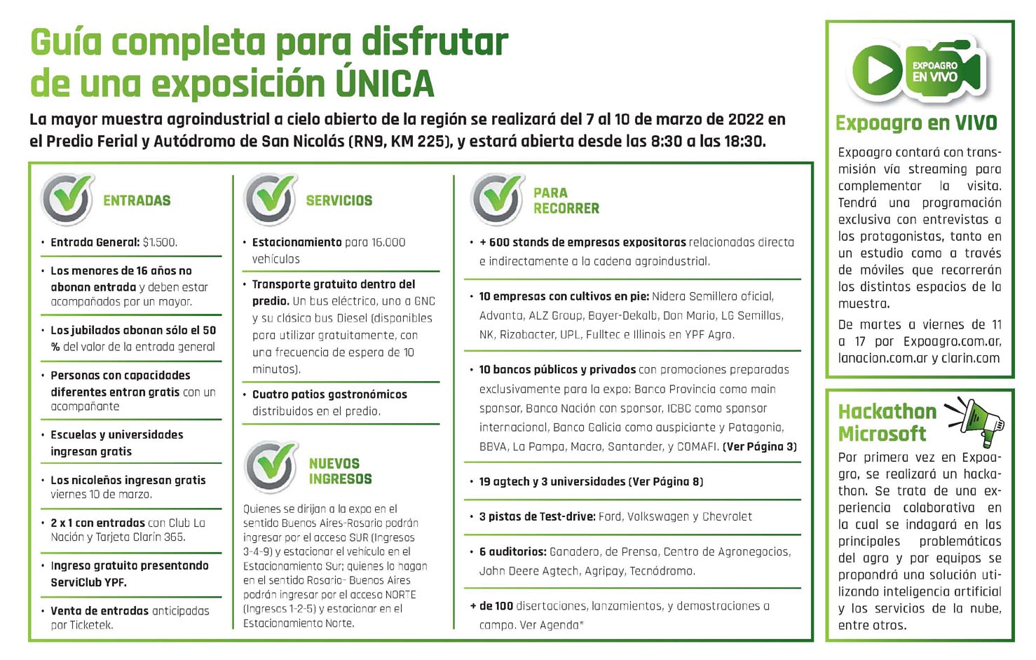 La mayor muestra agroindustrial a cielo abierto de la región se realizará del 7 al 10 de marzo de 2022 en el Predio Ferial y Autódromo de San Nicolás (RN9, KM 225), y estará abierta desde las 8:30 a las 18:30.
