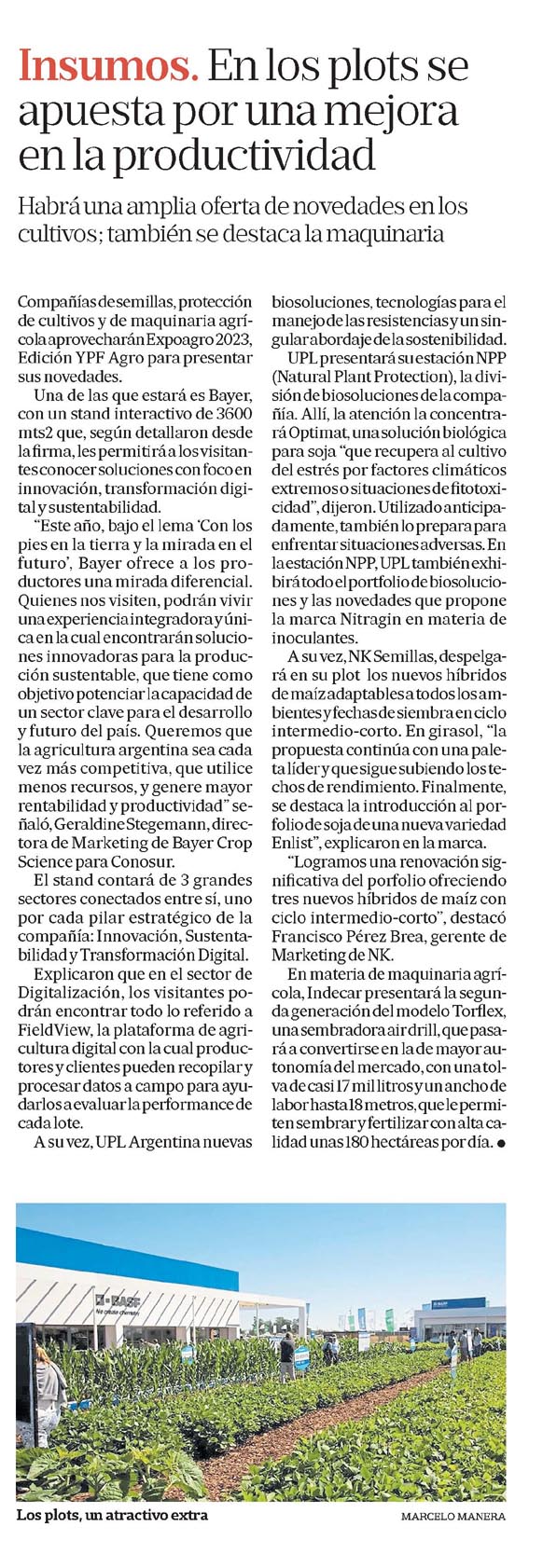Compañías de semillas, protección de cultivos y de maquinaria agrícola aprovecharán Expoagro 2023, Edición YPF Agro para presentar sus novedades.