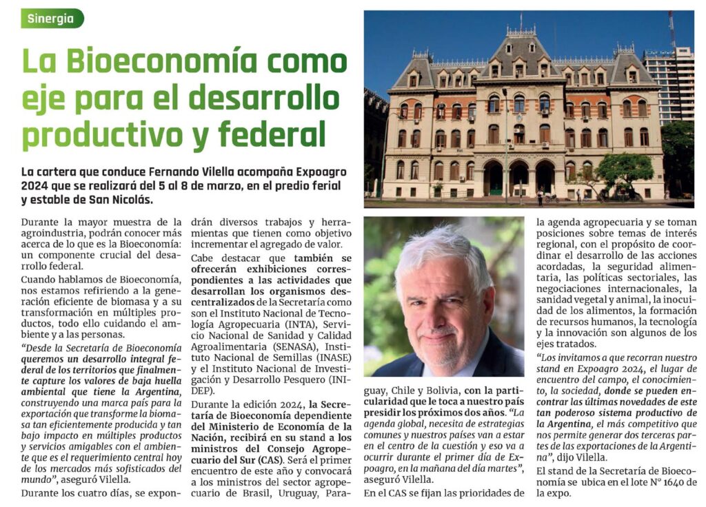 «Desde la Secretaría de Bioeconomía queremos un desarrollo integral federal de los territorios que finalmente capture los valores de baja huella ambiental que tiene la Argentina, construyendo una marca país para la exportación que transforme la biomasa tan eficientemente producida y tan bajo impacto en múltiples productos y servicios amigables con el ambiente que es el requerimiento central hoy de los mercados más sofisticados del mundo», aseguróVilella.