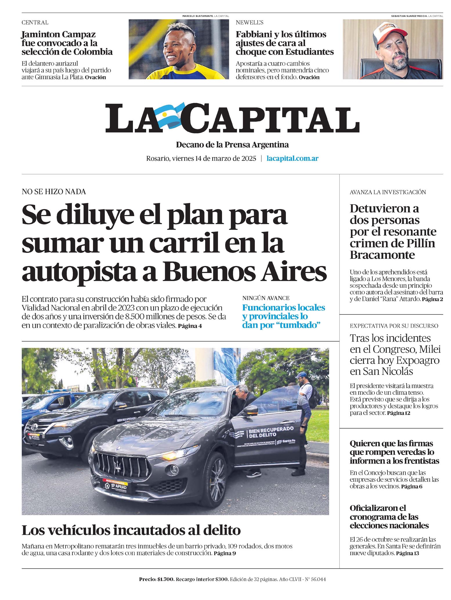 … autora del asesinato del barra y de Daniel «Rana» Attardo. Página 2 expectativa por su discurso Tras los incidentes en el Congreso, Milei cierra hoy Expoagro en San Nicolás El presidente visitará la muestra en medio de un clima tenso. Está previsto que se dirija a los productores y destaque los logros para…