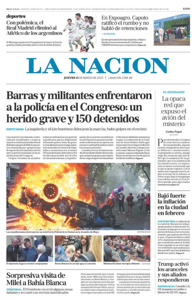 Una marcha inicialmente convocada por los jubilados, a la que se sumaron hinchas y barrabravas de distintos equipos de fútbol y que estuvo dominada por agrupaciones de izquierda y kirchneristas, derivó ayer en graves incidentes en las inmediaciones del Congreso.