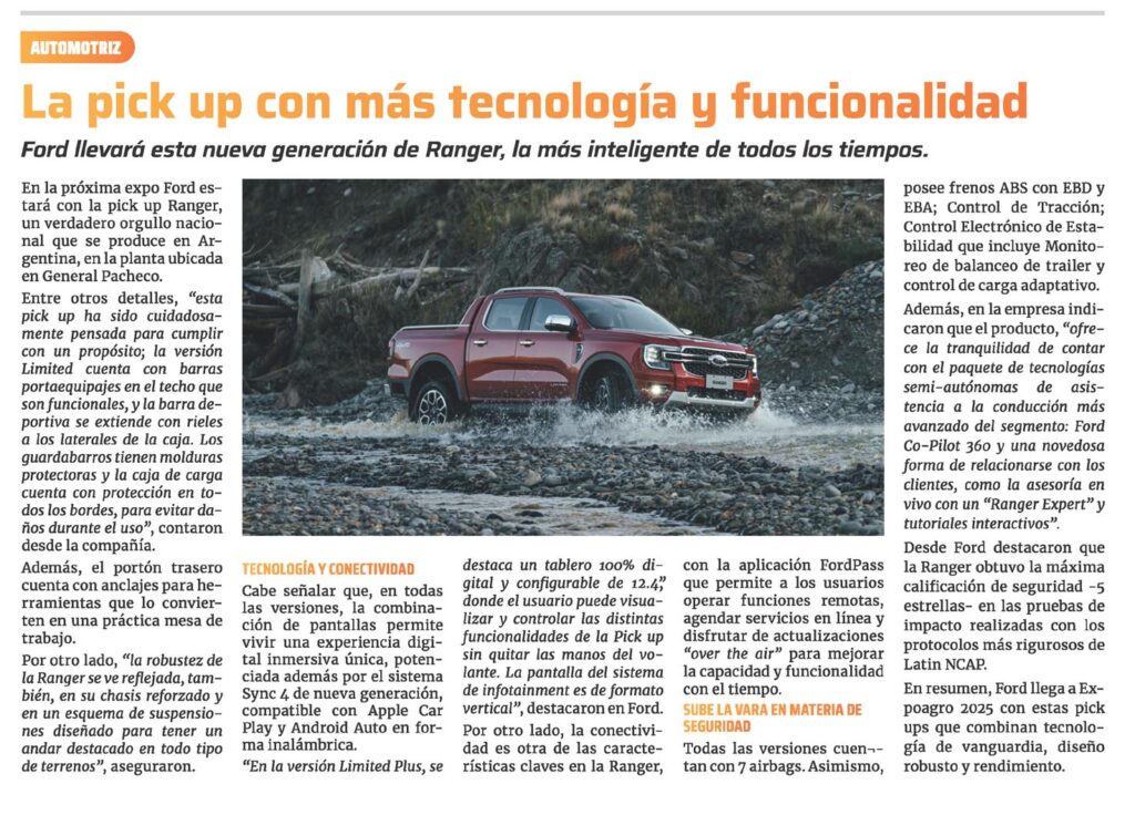 En resumen, Ford llega a Expoagro 2025 con estas pick ups que combinan tecnología de vanguardia, diseño robusto y rendimiento.