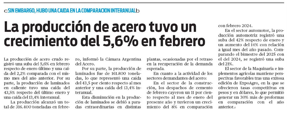 … del 2024, se registró una suba del 21%. El sector de la Maquinaria e implementos agrícolas mantiene perspectivas favorables tras una exitosa edición de ExpoAgro, en la que se ofrecieron tasas competitivas en pesos y en dólares, lo que permitió generar un 30% más de proformas en comparación con el año anterior…