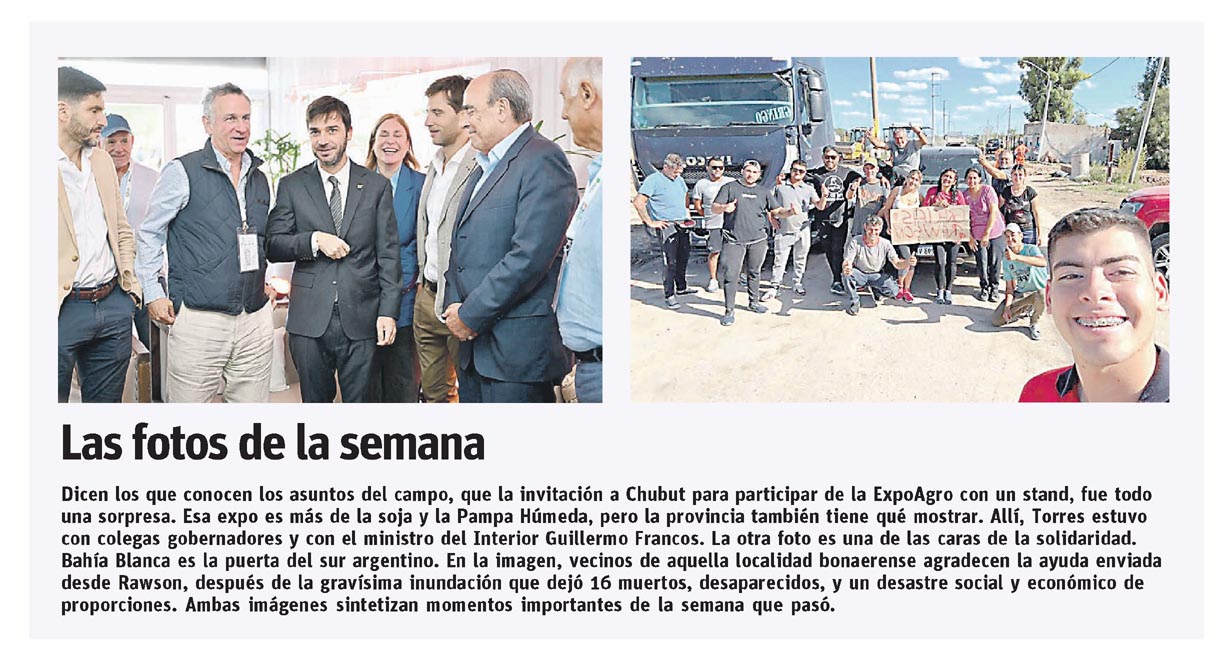 …Dicen los que conocen los asuntos del campo, que la invitación a Chubut para participar de la ExpoAgro con un stand, fue todo una sorpresa. Esa expo es más de la soja y la Pampa Húmeda, pero la provincia también tiene qué mostrar. Allí, Torres estuvo con…