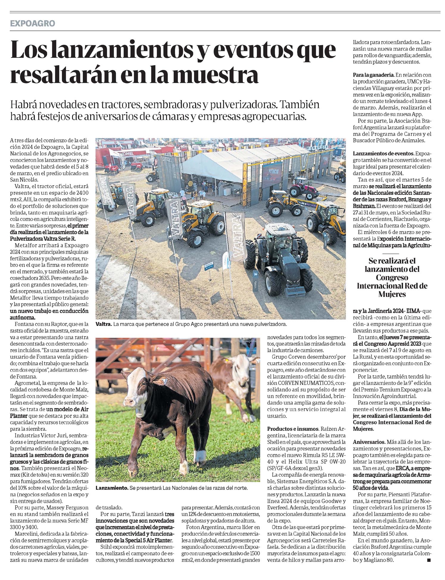 Lanzamientos de eventos. Expoagro también se ha convertido en el lugar ideal para presentar el calendario de eventos 2024.
