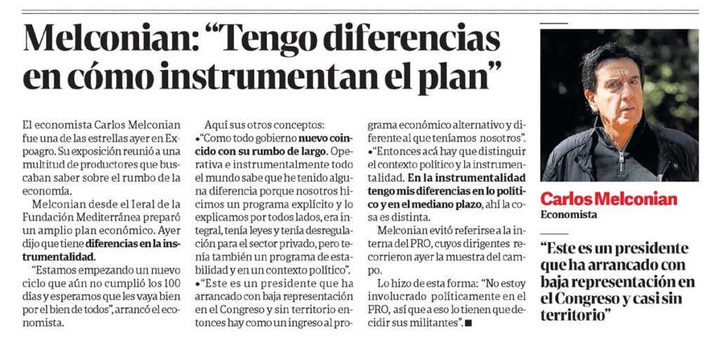 Melconian desde el Ieral de la Fundación Mediterránea preparó un amplio plan económico. Ayer dijo que tiene diferencias en la instrumentalidad.