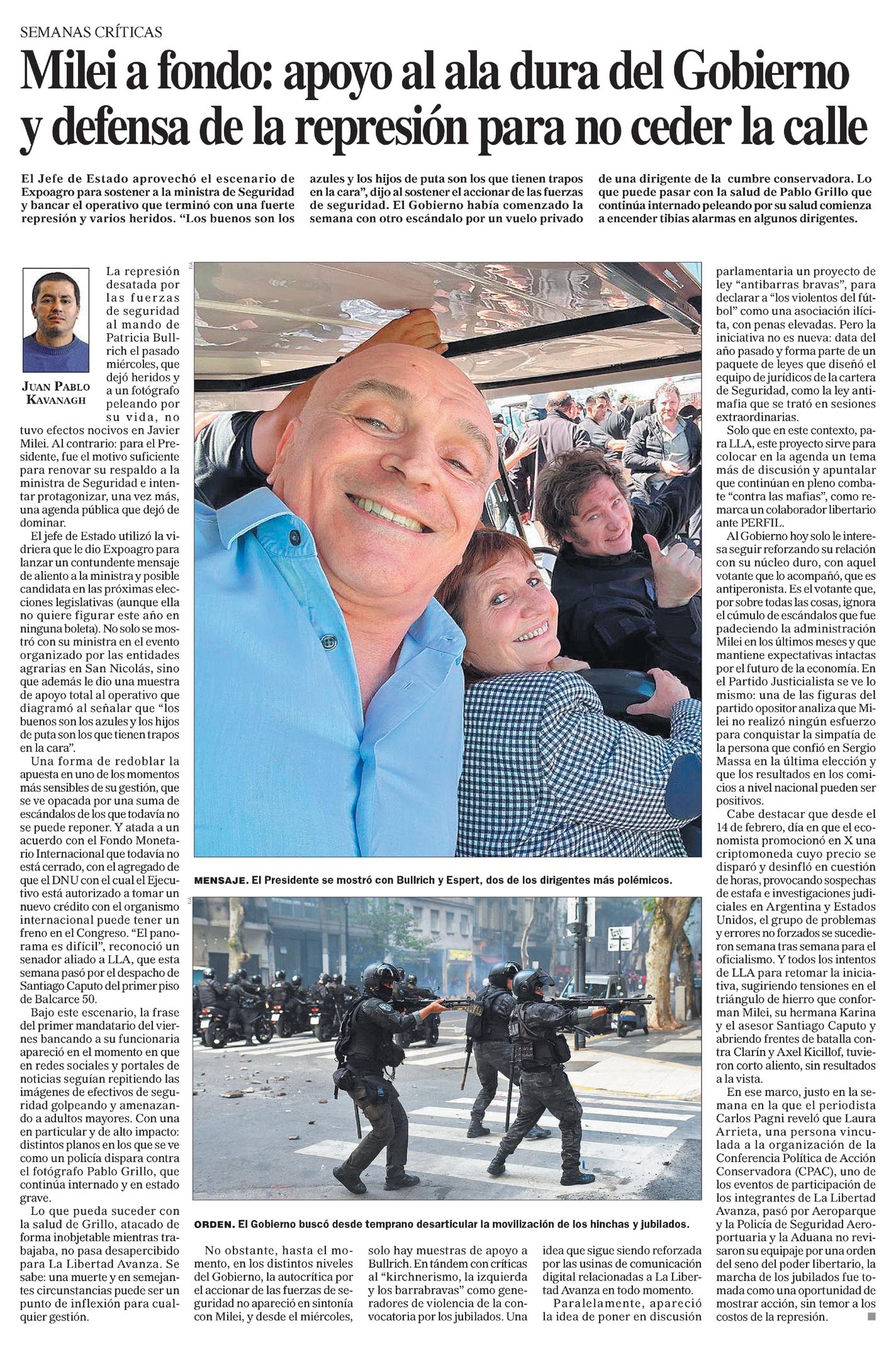 …El Jefe de Estado aprovechó el escenario de Expoagro para sostener a la ministra de Seguridad y bancar el operativo que terminó con una fuerte represión y varios heridos. «Los buenos son los azules y los…