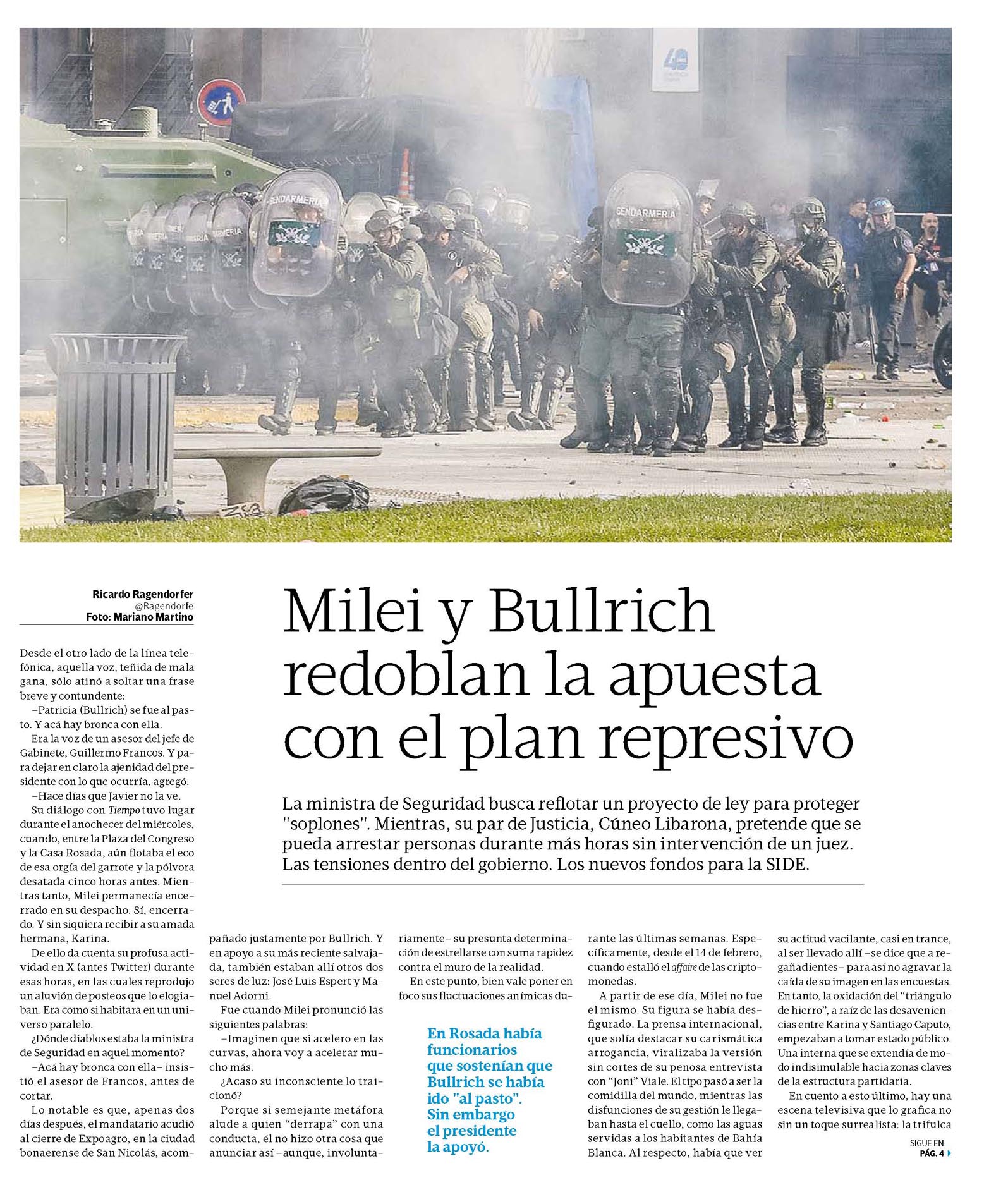 … ?Acá hay bronca con ella? insistió el asesor de Francos, antes de cortar. Lo notable es que, apenas dos días después, el mandatario acudió al cierre de Expoagro, en la ciudad bonaerense de San Nicolás, acompañado justamente por Bullrich. Y en apoyo a su más reciente salvajada, también estaban allí otros dos seres…