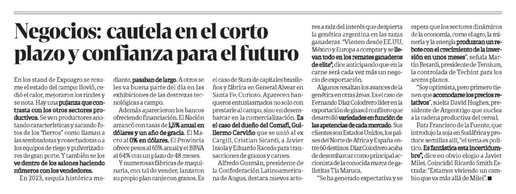 En los stand de Expoagro se resume el estado del campo: llovió, cedió el calor, mejoraron los rindes y se nota. Hay una pujanza que contrasta con los otros sectores productivos.