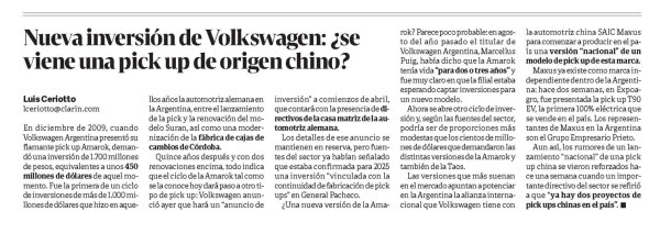 … país una versión «nacional» de un modelo de pick up de esta marca. Maxus ya existe como marca independiente dentro de la Argentina: hace dos semanas, en Expoagro, fue presentada la pick up T90 EV, la primera 100% eléctrica que se vende en el país. Los representantes de Maxus en la Argentina son el Grupo Empresario…
