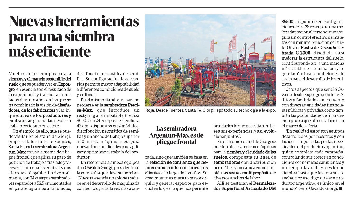 …Muchos de los equipos para la siembra y el manejo sostenible del suelo que se pueden ver en Expoagro, en esencia son el resultado de la experiencia y trabajos acumulados durante años en los que se ha combinado la visión de diseñadores, de los fabricantes…