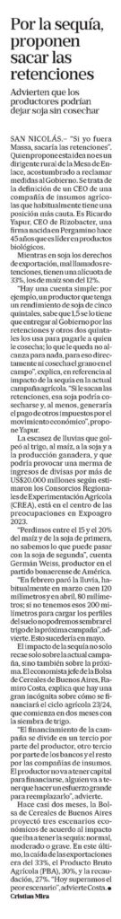 SAN NICOLÁS.? «Si yo fuera Massa, sacaría las retenciones».