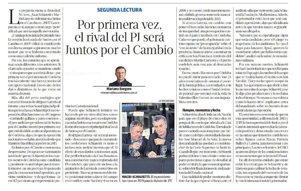 Por eso, los comicios que se aproximan serán diferentes a los anteriores. Si el armado opositor se mantiene unido -como parece que sucederá ahora-, por primera vez el peronismo de Córdoba tendrá enfrente una fuerza provincial con apoyo nacional. Ese es uno de los datos distintivos de lo que viene en materia electoral Más allá del yerro zoológico que cometió Horacio Rodríguez Larreta al intentar caracterizar la ambigüedad polí- tica que le achaca a Schiaretti por su cooperación al kirchnerismo en el Congreso -confundió gallinas y patos con teros-, el precandidato presidencial de Juntos por el Cambio mostró por primera vez que está decidido a criticar al peronismo de Córdoba, algo a lo que la oposición nacional no se había atrevido desde que Mauricio Macri llegó al poder en 2015.