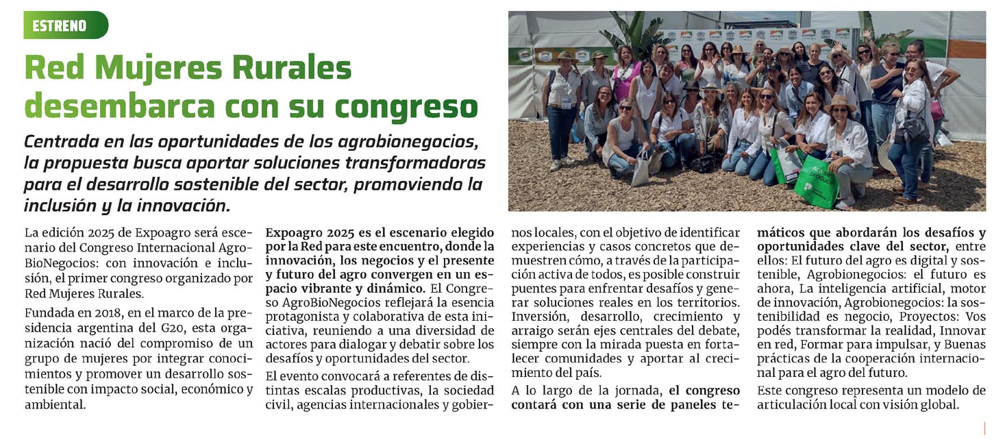 La edición 2025 de Expoagro será escenario del Congreso Internacional Agro- BioNegocios: con innovación e inclusión, el primer congreso organizado por Red Mujeres Rurales.