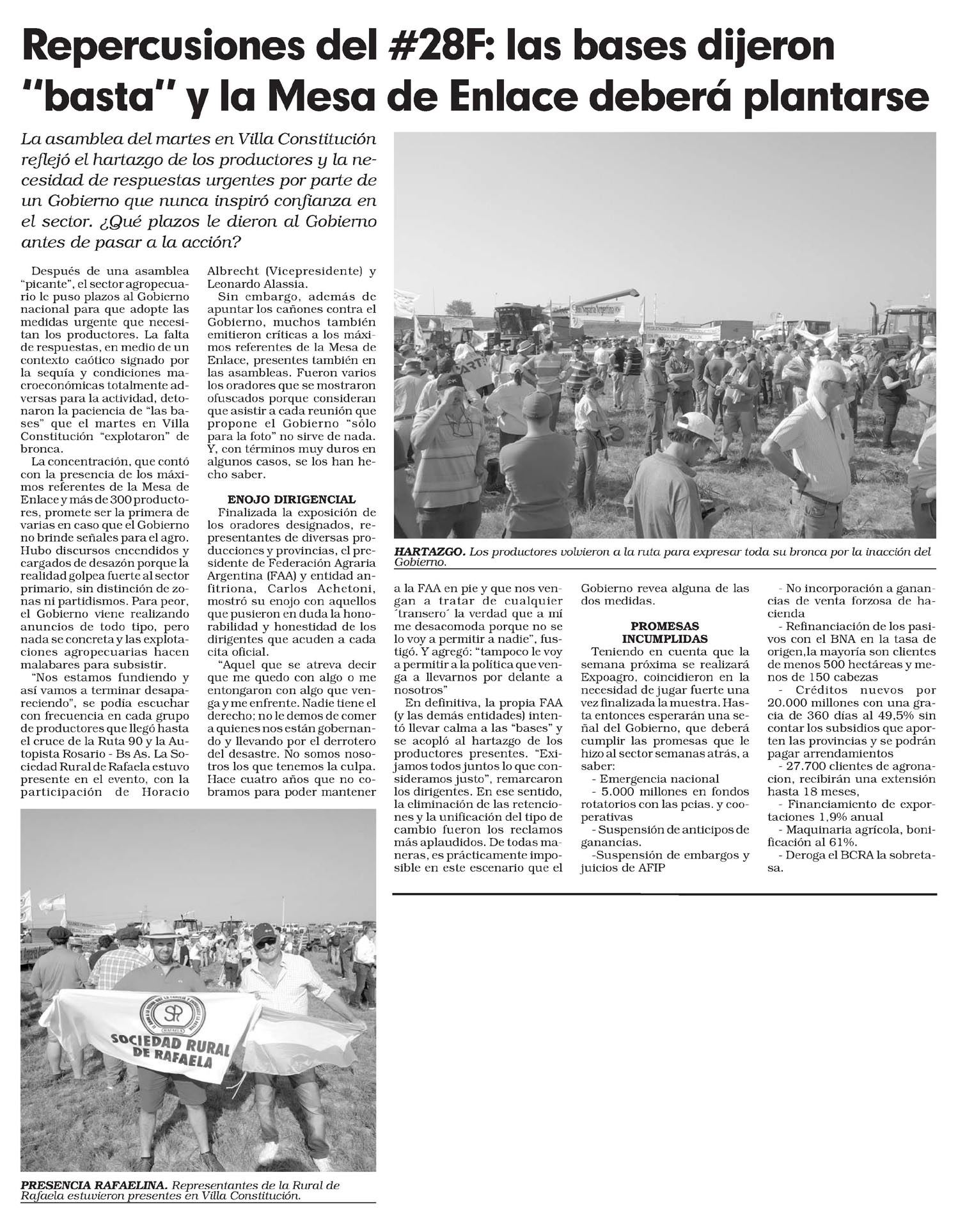 «Nos estamos fundiendo y así vamos a terminar desapareciendo», se podía escuchar con frecuencia en cada grupo de productores que llegó hasta el cruce de la Ruta 90 y la Autopista Rosario – Bs As. La Sociedad Rural de Rafaela estuvo presente en el evento, con la participación de Horacio
