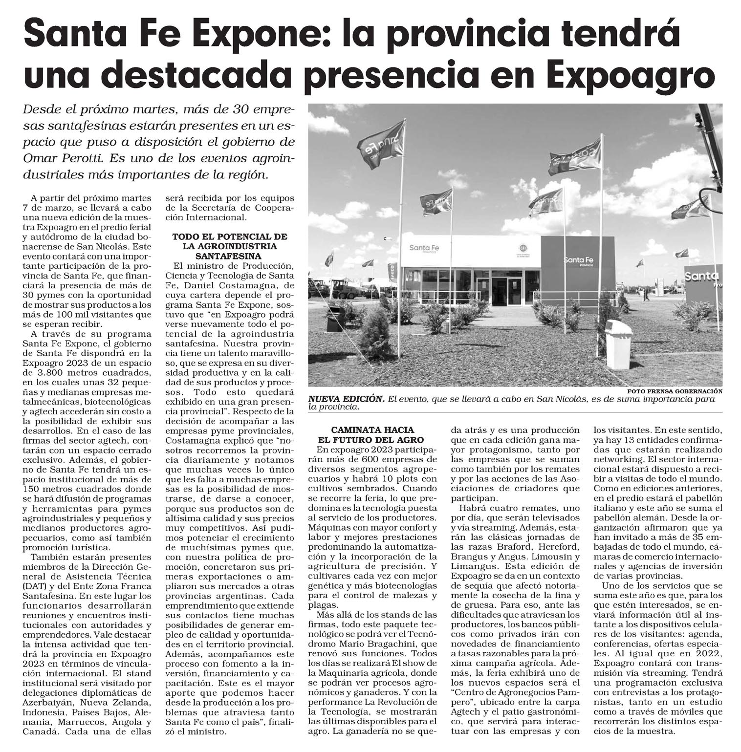 A partir del próximo martes 7 de marzo, se llevará a cabo una nueva edición de la muestra Expoagro en el predio ferial y autódromo de la ciudad bonaerense de San Nicolás. Este evento contará con una importante participación de la provincia de Santa Fe, que financiará la presencia de más de 30 pymes con la oportunidad de mostrar sus productos a los más de 100 mil visitantes que se esperan recibir.