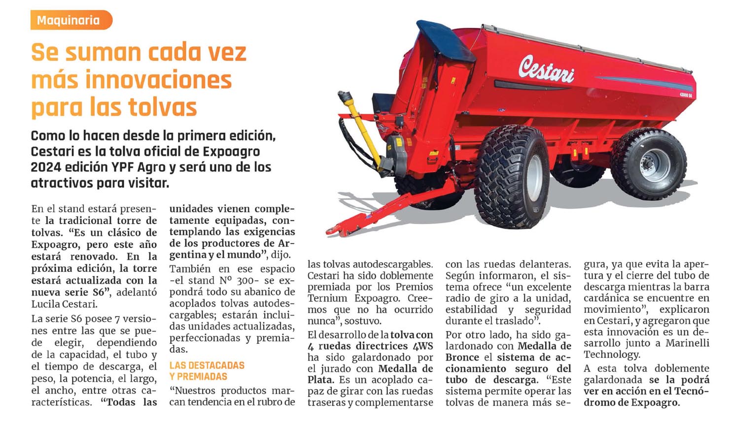 Como lo hacen desde la primera edición, Cestari es la tolva oficial de Expoagro 2024 edición YPF Agro y será uno de los atractivos para visitar.