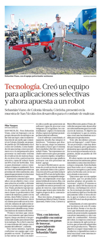 …Pilar Vázquez ENVIADA ESPECIAL SAN NICOLÁS.- Para Sebastián Viano, estar en Expoagro con su propio desarrollo tecnológico no fue solo un logro, sino la materialización de un sueño que comenzó en Colonia Almada, un pequeño pueblo de 350…