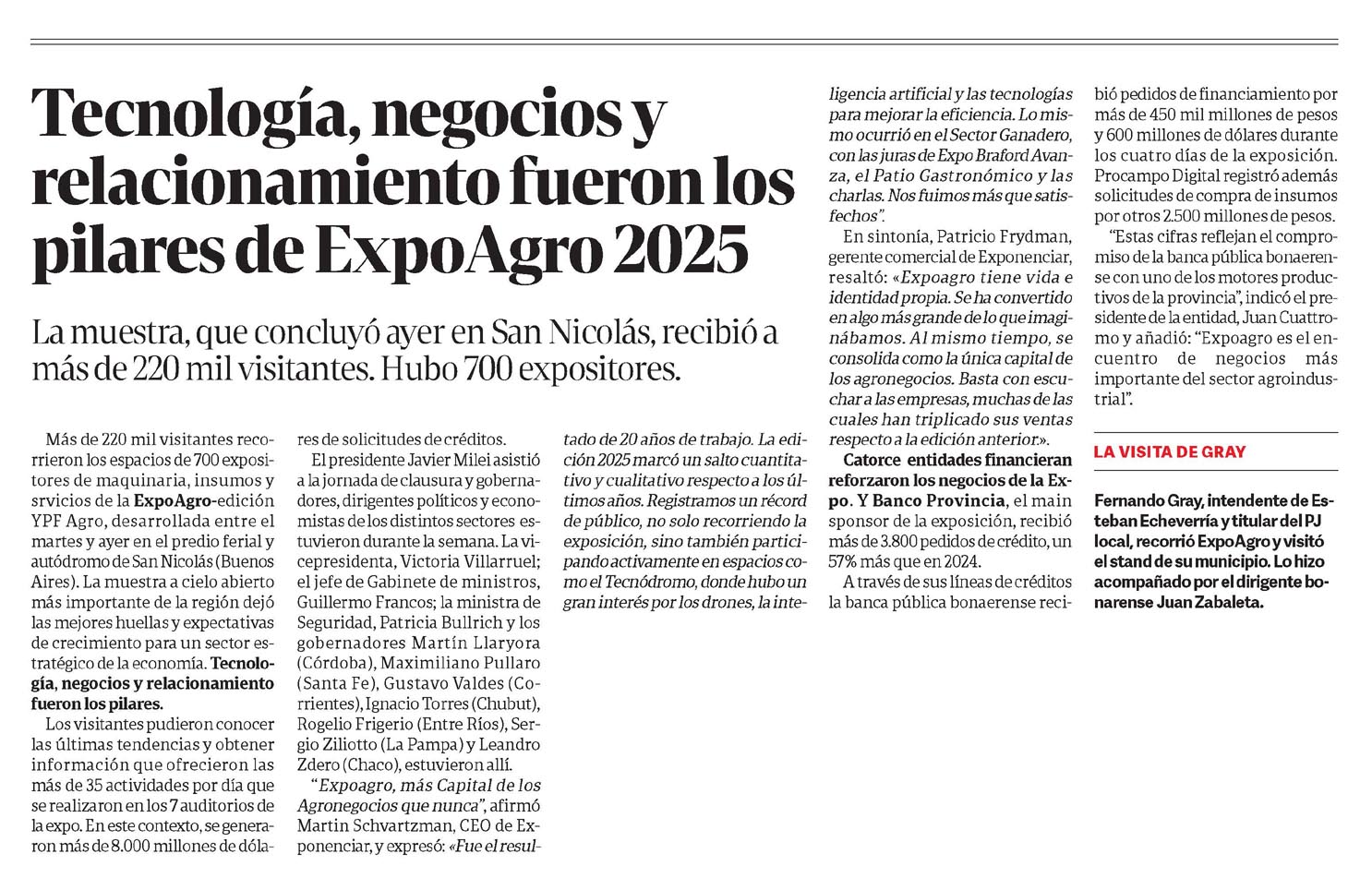 … Gustavo Valdes (Corrientes), Ignacio Torres (Chubut), Rogelio Frigerio (Entre Ríos), Sergio Ziliotto (La Pampa) y Leandro Zdero (Chaco), estuvieron allí. «Expoagro, más Capital de los Agronegocios que nunca», afirmó Martin Schvartzman, CEO de Exponenciar, y expresó: «Fue el resultado de 20 años de trabajo. La edición…