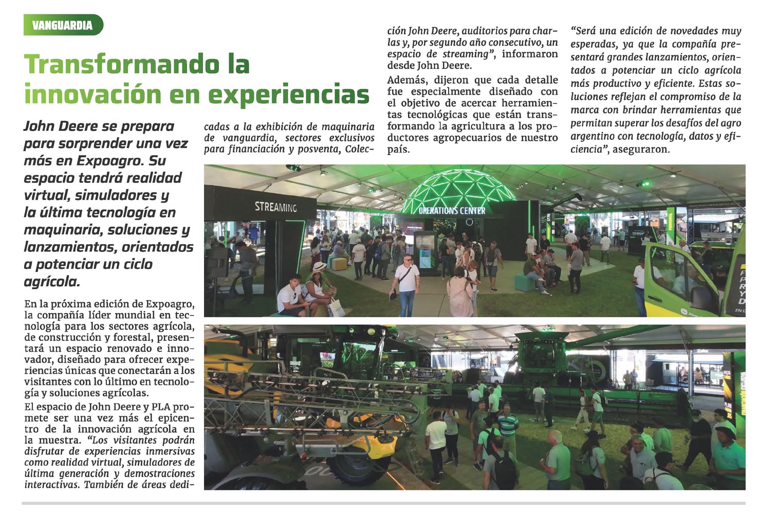 John Deere se prepara para sorprender una vez más en Expoagro. Su espado tendrá realidad virtual, simuladores y la última tecnología en maquinaria, soluciones y lanzamientos, orientados a potenciar un ciclo agrícola.