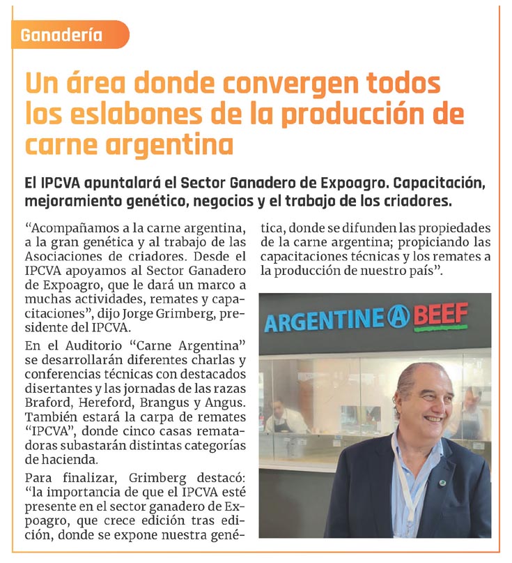 «Acompañamos a la carne argentina, a la gran genética y al trabajo de las Asociaciones de criadores. Desde el IPCVA apoyamos al Sector Ganadero de Expoagro, que le dará un marco a muchas actividades, remates y capacitaciones», dijo Jorge Grimberg, presidente del IPCVA.