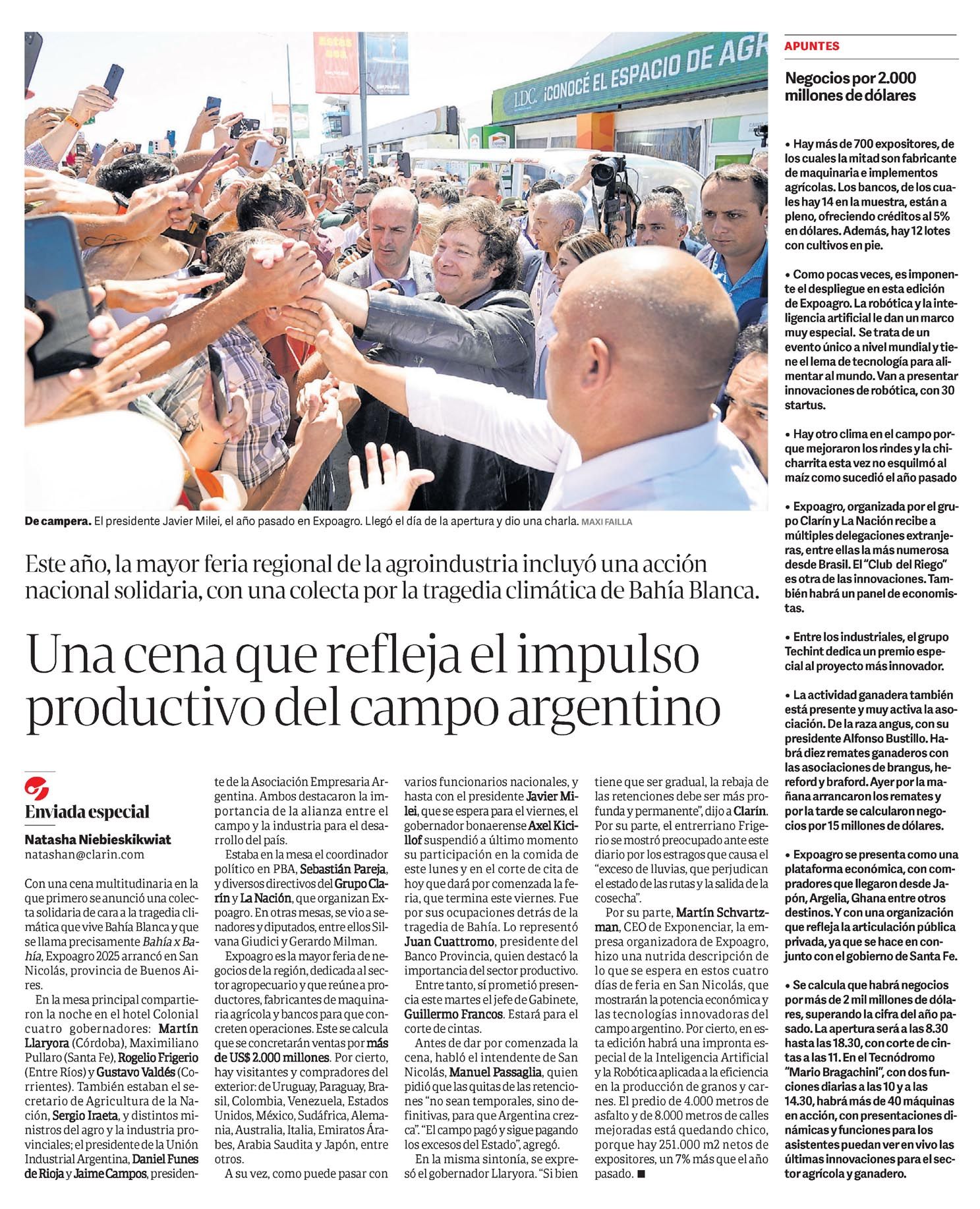 Con una cena multitudinaria en la que primero se anunció una colecta solidaria de cara a la tragedia climática que vive Bahía Blanca y que se llama precisamente Bahía x Bahía, Expoagro 2025 arrancó en San Nicolás, provincia de Buenos Aires.