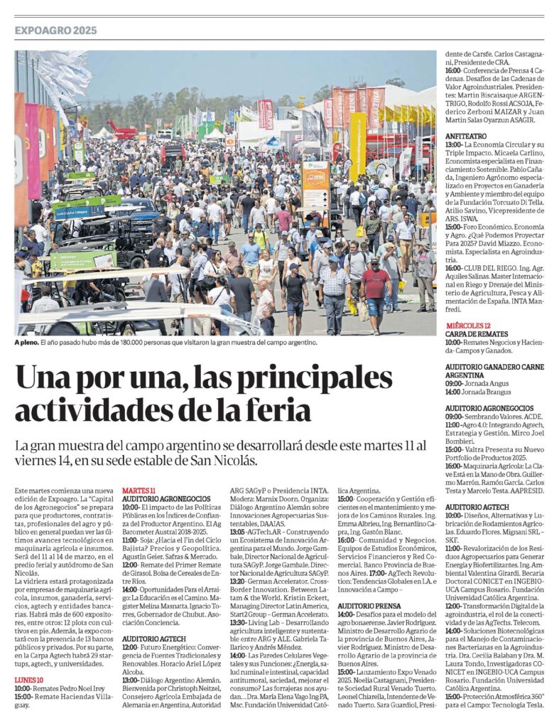 Desde el martes al jueves, el tecnódromo, una de las principales atracciones de Expoagro, será de la siguiente manera: 10:00 El Show de las Maquinas.