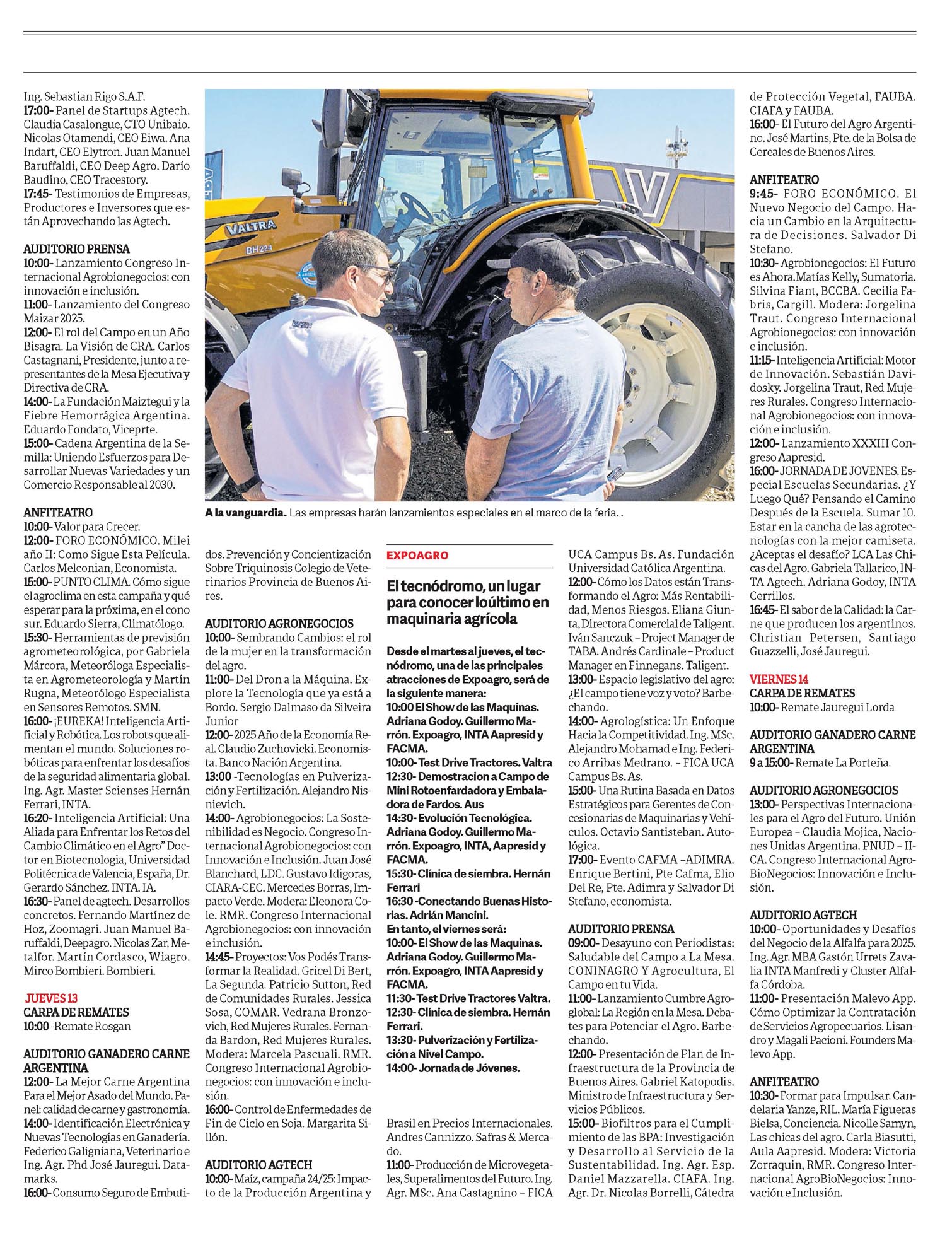 10:00- Test Drive Tractores. Valtra 12:30- Demostracion a Campo de Mini Rotoenfardadora y Embaladora de Fardos. Aus 14:30- Evolución Tecnológica.
