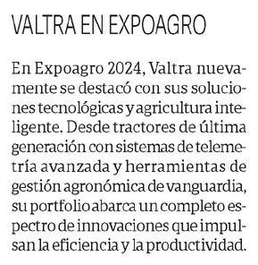 En Expoagro 2024, Valtra nuevamente se destacó con sus soluciones tecnológicas y agricultura inteligente.Desde tractores de última generación con sistemas de telemetría avanzada y herramientas de gestión agronómica de vanguardia, su portfolio abarca un completo espectro de innovaciones que impulsan la eficiencia y la productividad